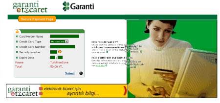 - In Turkindex. Com Mitgliedern System können Sie sicher Ihre ganzen Zahlungen online über Internet durch Ihre Kreditkarte machen. - Irgendeine Informationen über Ihre Kreditkarte sind nicht gesammelt oder sind auf Turkindex.com. - Die ganzen Zahlungsverhandlungen sind an der Sicheren Zahlungsseite von Garanti Bank gemacht. und Die Zahlungsverhandlung ist unter der Zusicherung von Garanti Bank durchgeführt. - Nur Ihre Mitgliedschafteninformationen sind an Turkindex.com Website. - Ihre Kreditkarteninformationen sind KEINESWEGS empfangen und hat durch Turkindex.com Website |